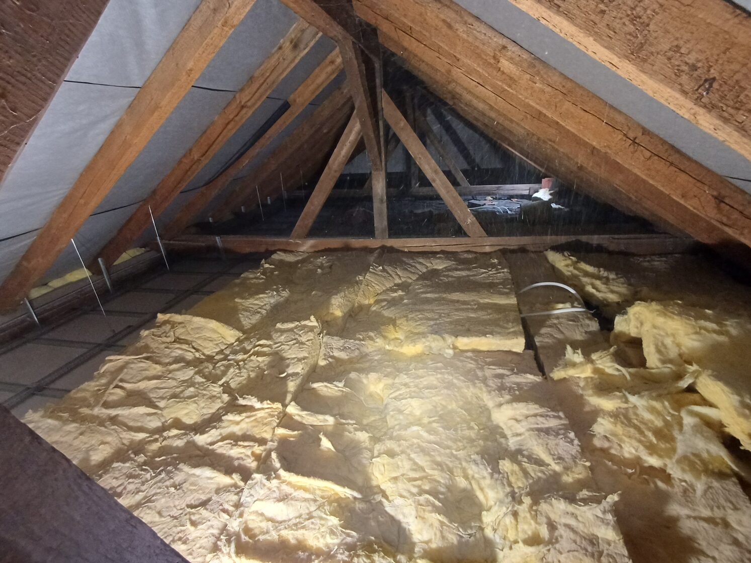 Přesné pokrytí i složitých prostor – izolace se dostane i do těžko přístupných koutů střechy nebo půdy.