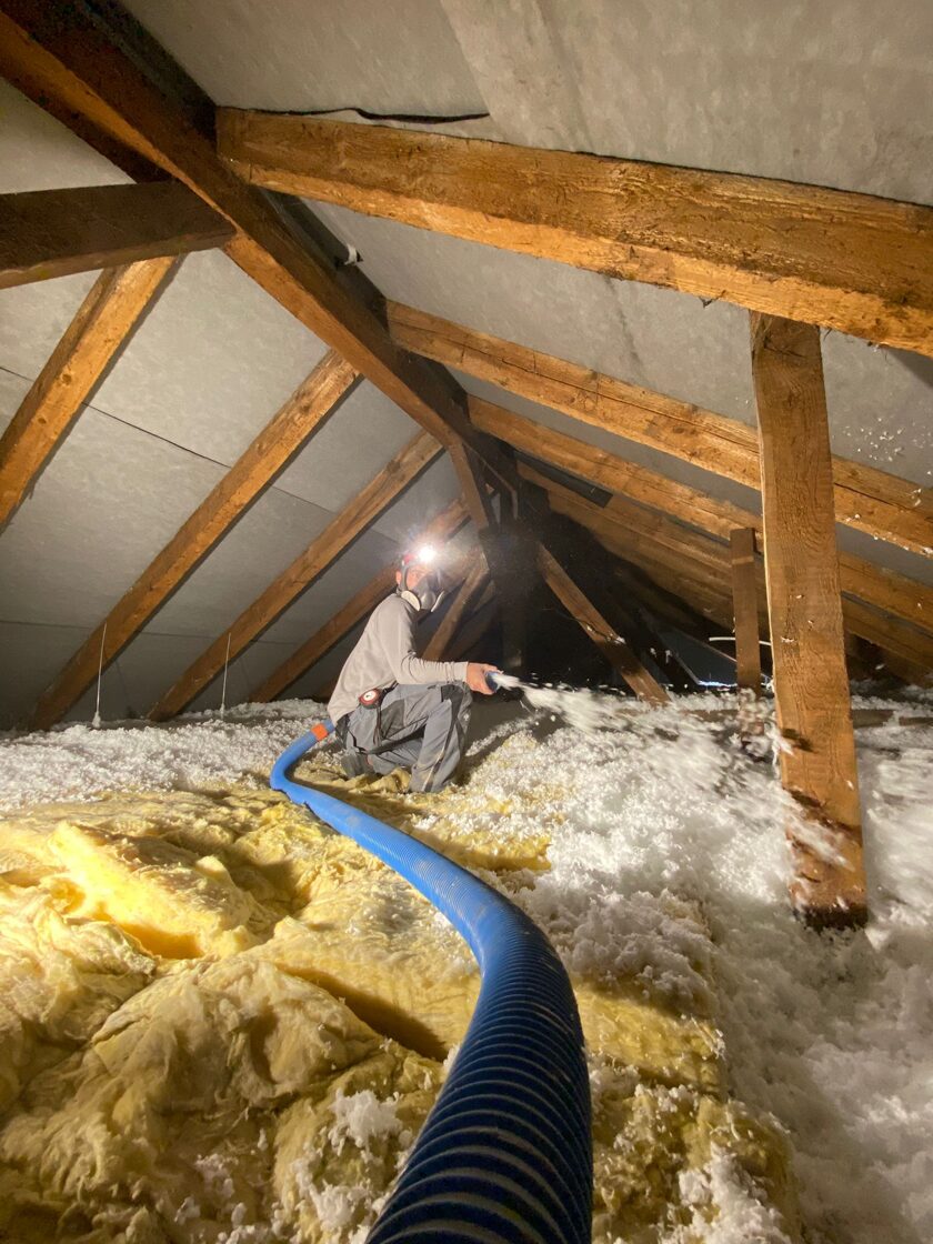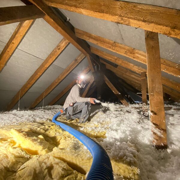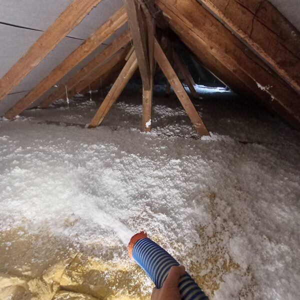Rychlá a čistá aplikace – izolace se fouká přímo do stropních a střešních konstrukcí, bez nutnosti složité rekonstrukce.
