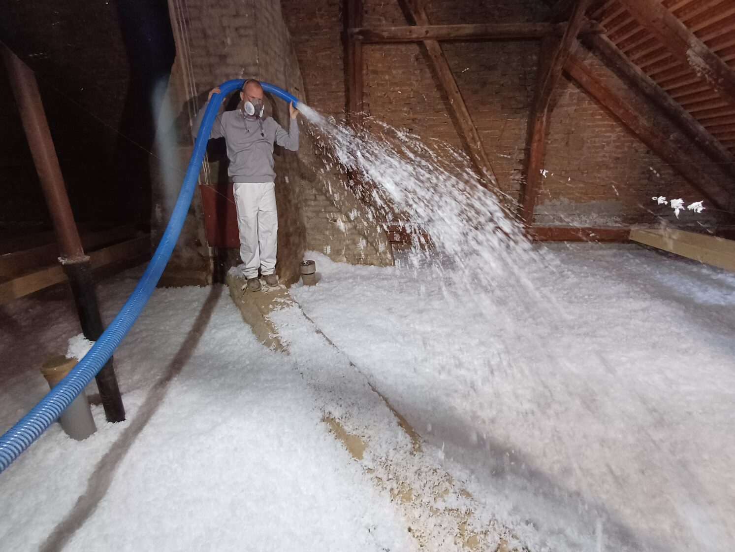 Dostupnost do těžko přístupných míst – izolace pronikne i do úzkých prostor mezi stropy, trámy a podkroví.