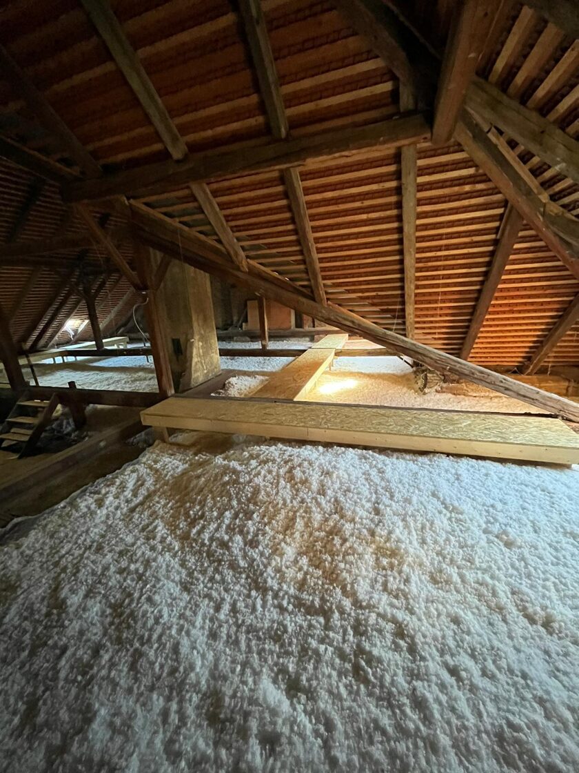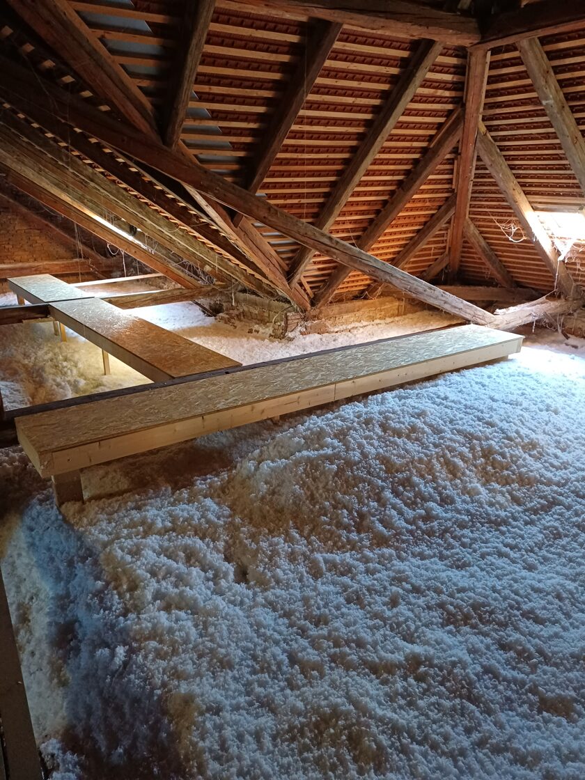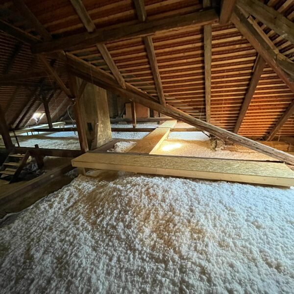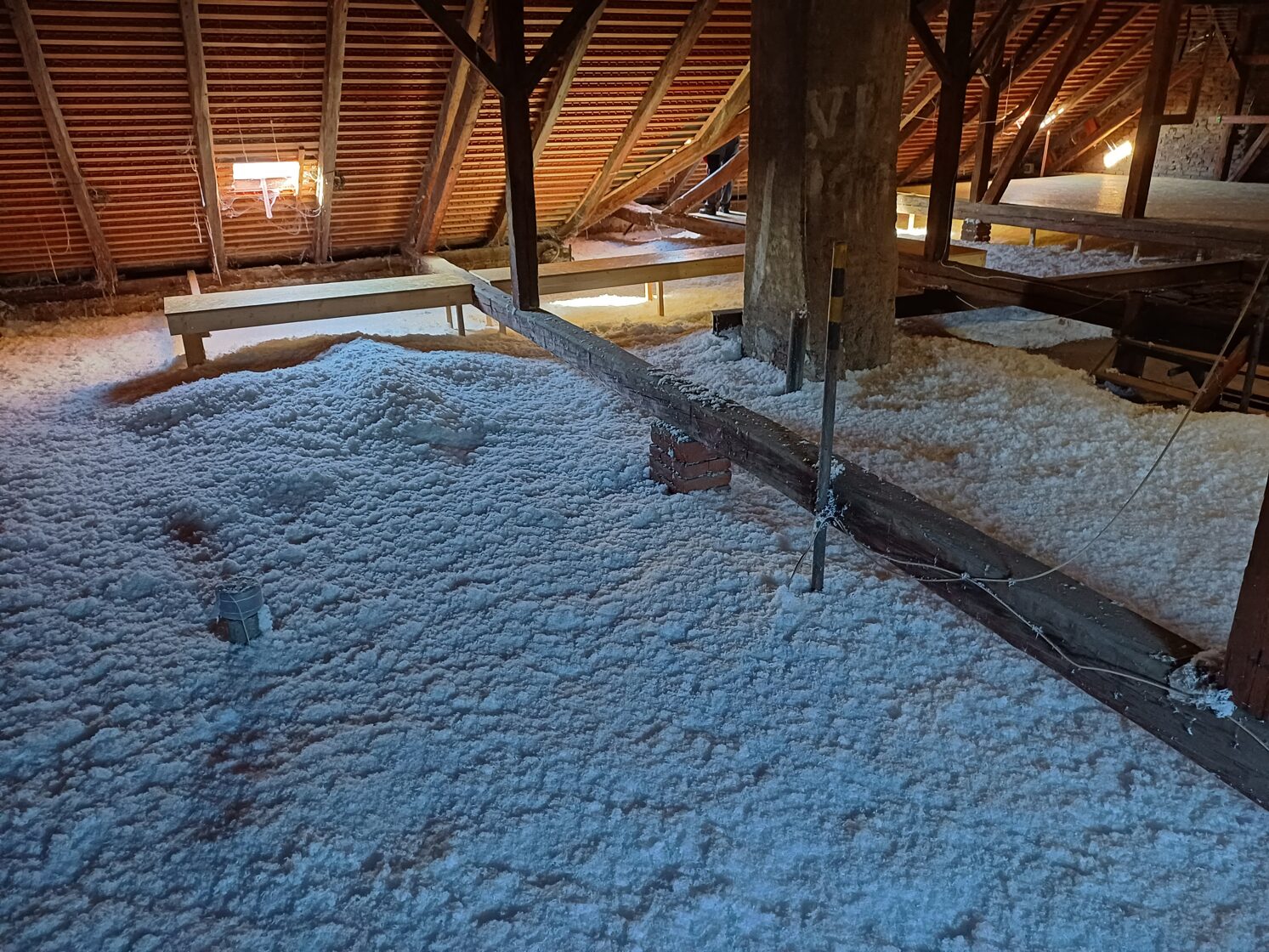 Rychlá a bezprahová aplikace – izolace se fouká přímo do střešních konstrukcí nebo mezi trámy, bez nutnosti složité rekonstrukce.