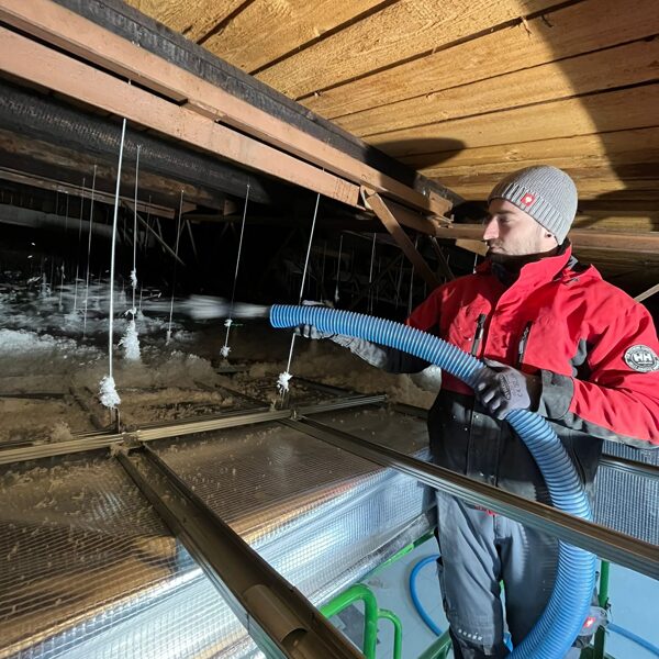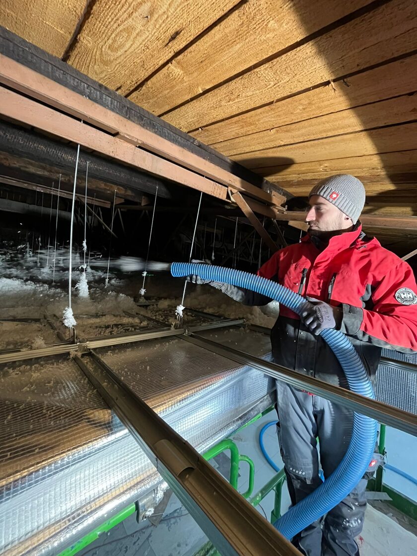 Flexibilita a přesné pokrytí – izolace pronikne i do těžko přístupných prostor, mezi střešní trámy, větrací kanály či mezistropy.